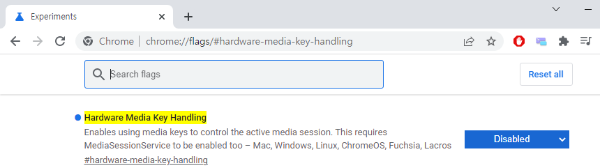 2. 위 값을 disabled 후 우측 하단의 re launch를 클릭하면 재실행 되면서 해결된다.