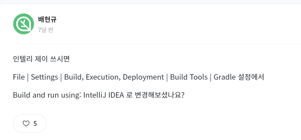 카테고리 없음 [개인용]Intellij 프로젝트 시작 시 query dsl 참고 리놉 2021. 10. 27. https://www.inflearn.com/questions/23530 querydsl 설정관련 질문드립니다. - 인프런 | 질문 & 답변 현재 build.gradle에서 querydsl 환경설정을 하고 있는데 에러가 있어서 질문드립니다. 아래와 같이 build.gradle 작성했고 reimport 후 compileQuerydsl로 Q클래스들을 생성하였습니다. 하지만 빌드시 에러가 www.inflearn.com 공유하기 게시글 관리 리놉's 개발일기 저작자표시 변경금지 (새창열림)