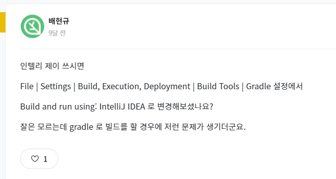 카테고리 없음 [IntelliJ] :compileQuerydslJava FAILED query dsl build 실패 리놉 2021. 12. 13. https://www.inflearn.com/questions/41911 querydsl 빌드 에러 질문드립니다. - 인프런 | 질문 & 답변 안녕하세요 기선님, 강의 잘 보고 있습니다. 우선, 강의는 maven으로 진행되었는데 gradle 관련 질문이라.. 죄송힙니다. 그래도 너무 답답하고 구글링을 몇시간 째 해도 안돼서 지푸라기라도 잡는 www.inflearn.com 공유하기 게시글 관리 리놉's 개발일기 저작자표시 변경금지 (새창열림)